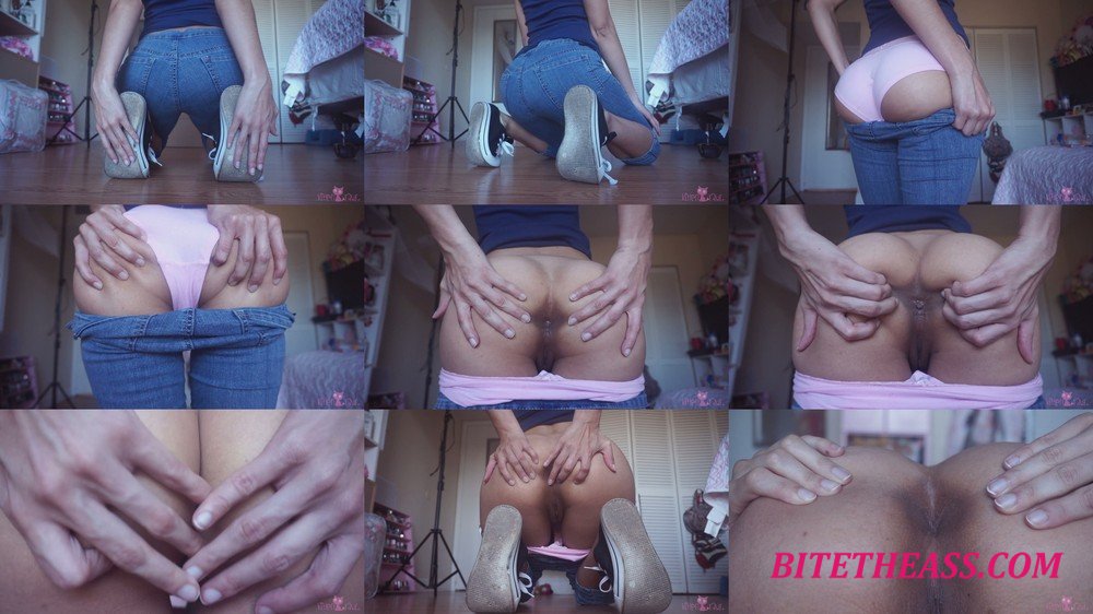 Video Description: I start off with jeans and panties on and then i slowly start exposing my bum until its fully bare. There are different angles of my booty both close up and away from the camera. There are extreme close ups of my booty hole winking, being spread and being rubbed. You can watch me do some spanks,