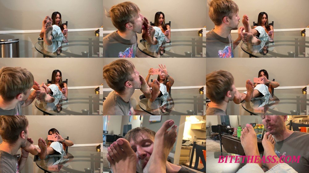 Video Description: Dirty feet fans will love this one. Goddess Ellen’s feet are absolutely filthy from walking barefoot in the street. She displays her dirty soles on the table for a couple minutes and then calls her slave in and orders him to clean her filthy feet. He gets on his knees and licks every single inch of