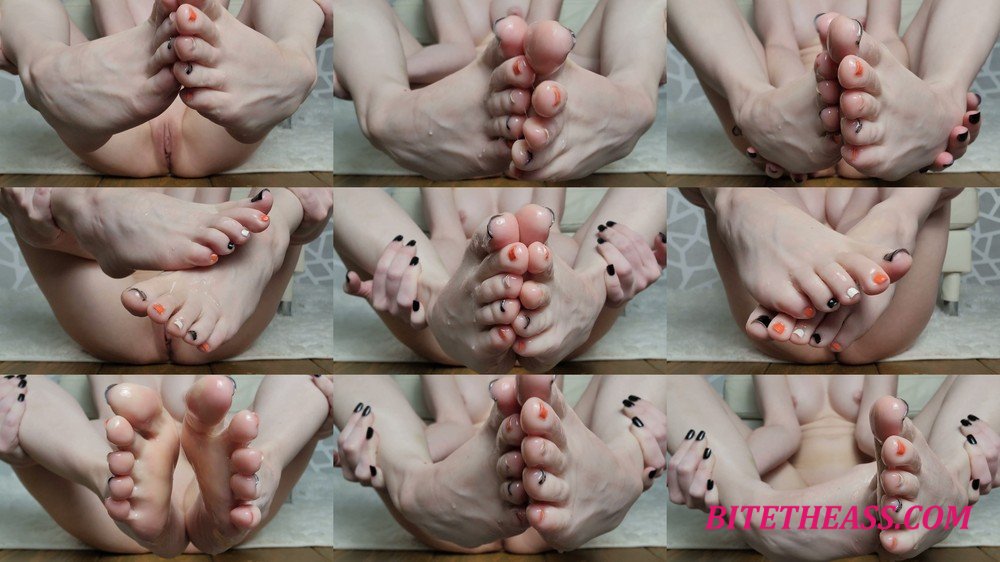 Video Description: Listen to my slippery toes sliding over each other again and again as I lube them up for a footjob. Can you get off the sights and sounds?